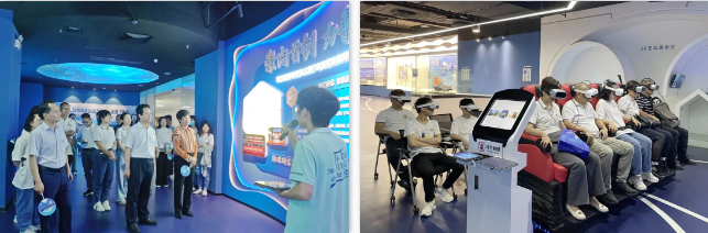 下午,三个党支部的成员们一同前往南方海洋科学与工程广东省实验室(珠海)(以下简称南方海洋实验室),参观可视化中心和展示中心,聆听讲解员对珠海校区建设海洋学科群的学科布局、实验室建设概况和发展进程的介绍。党员们通过AR、VR、球幕投影、沉浸式走廊近距离直接体验海洋观测要素,认识智能无人船系统、探索极地奥秘,深入了解实验室的建设发展情况以及取得的标志性成果。