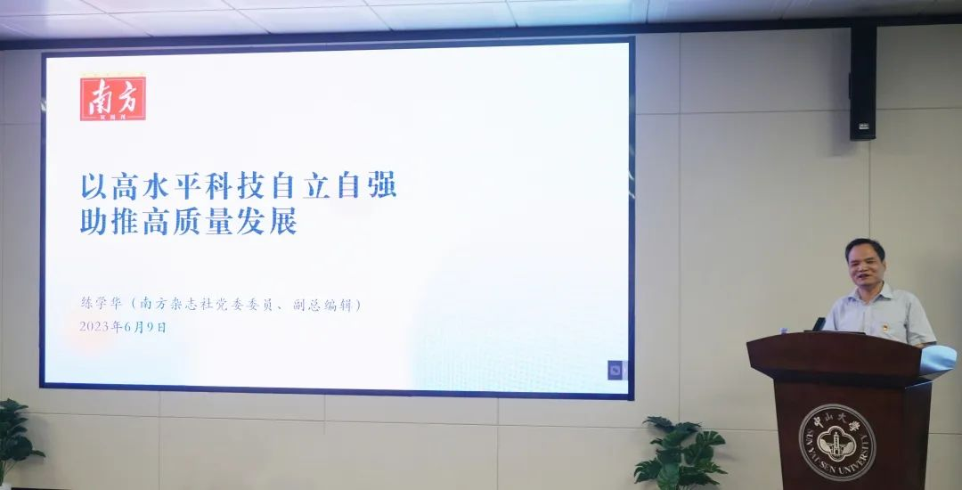 练学华副总编辑以《高水平科技自立自强助推高质量发展》为题,带领同志们回顾了中国共产党坚持对科技事业领导的经验。在党的领导下,我国科技事业接续奋斗,繁荣发展。党的二十大报告提出,高质量发展是全面建设社会主义现代化国家的首要任务,加快高水平科技自立自强,是推动高质量发展的必由之路。今年4月,习近平总书记视察广东时发表了系列重要论述,寄望广东在提升科技自立自强能力方面继续走在全国前列。他指出,《南方》杂志将聚焦习近平总书记赋予广东的使命任务,紧扣广东以高质量发展为牵引、加快推进高水平科技自立自强的各项任务,为广东各项发展事业“鼓”与“呼”,也为广东壮大主流思想舆论,塑造主流舆论新格局作出新的更大贡献。