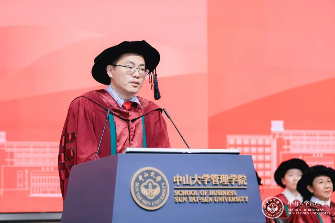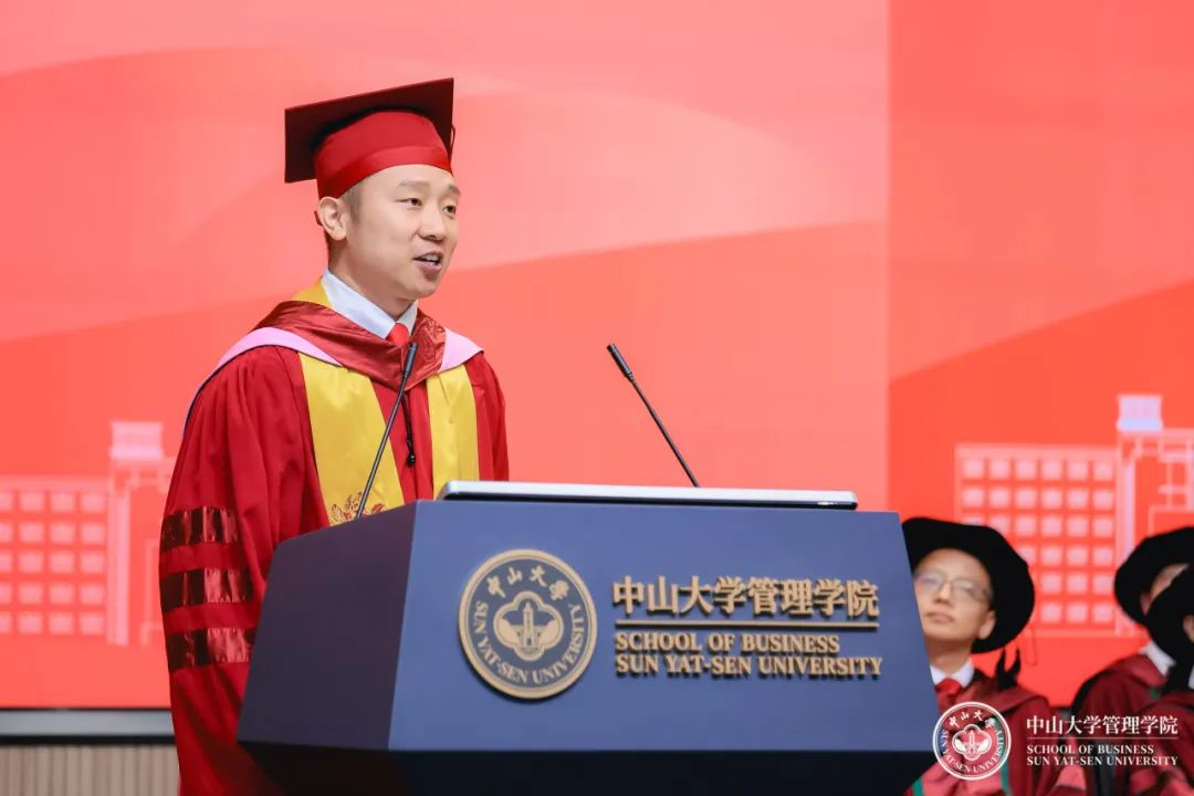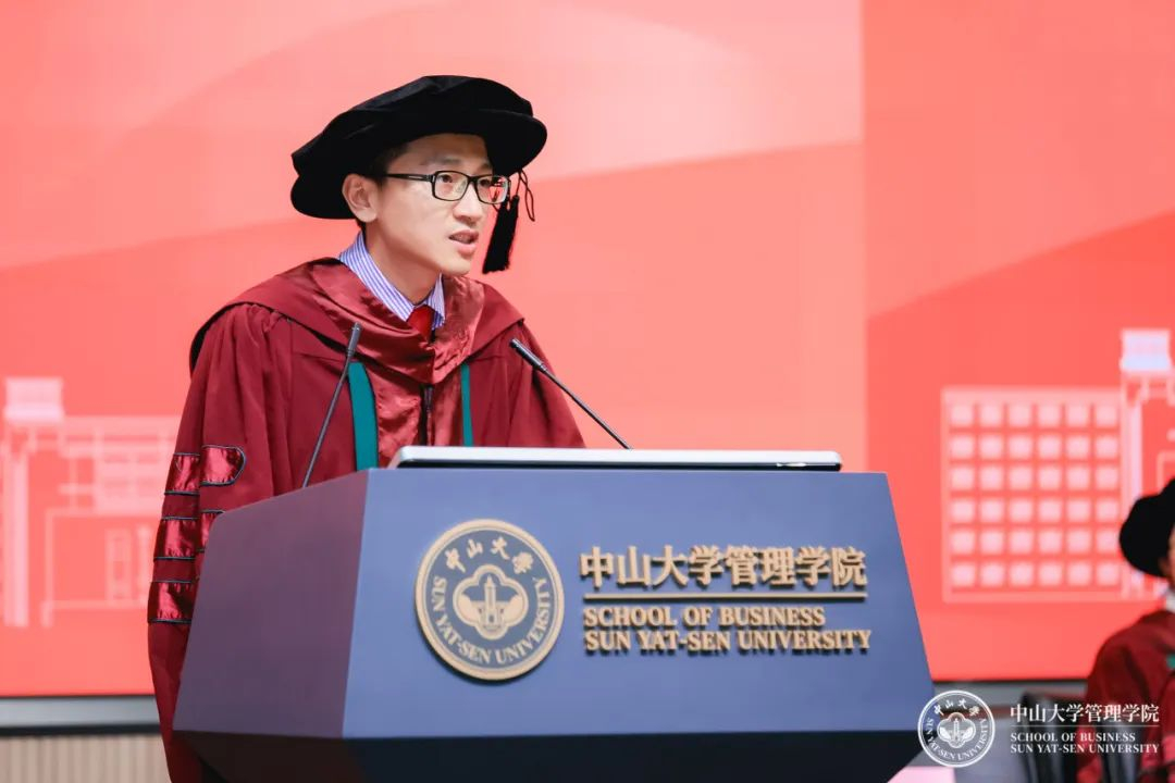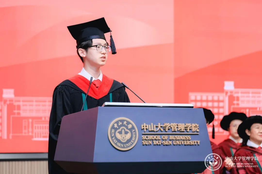 本科生代表郭梓瀚用“选择”总结了大学本科四年的学习生活,同学们即将前往人生的下一阶段,面临选择时,不妨回想一下在中大管院的这段时间,把“博学、审问、慎思、明辨、笃行”的校训精神融入拼搏向上的动力,那就不会惧怕做出选择。