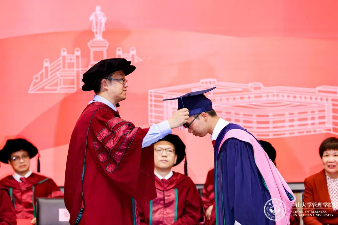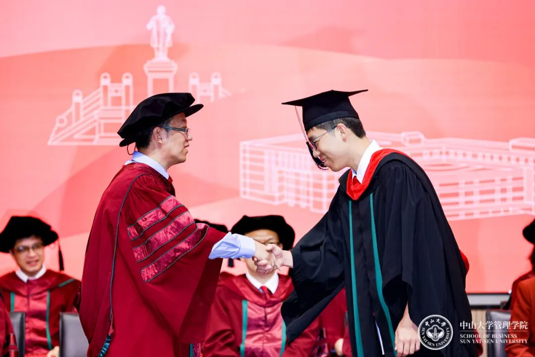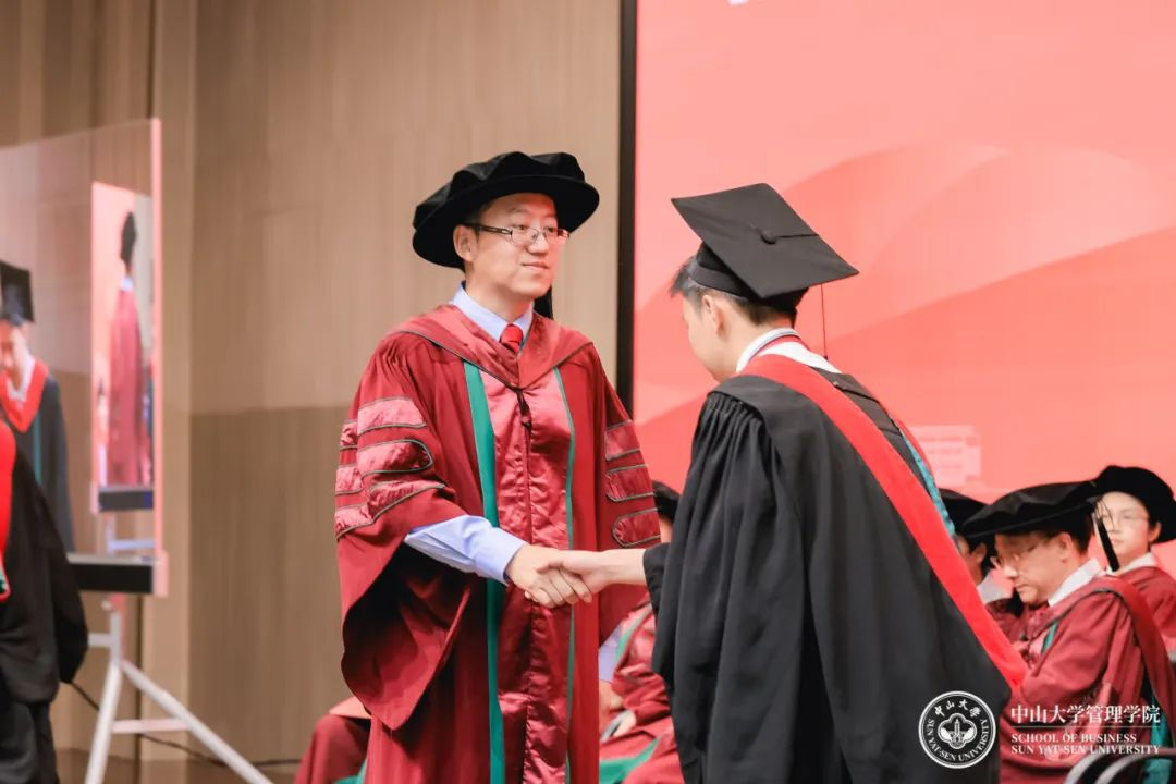在学位授予仪式上,张俊生副院长为毕业生逐一拨穗,并合影留念,又一次与管院的独家记忆,就此定格。