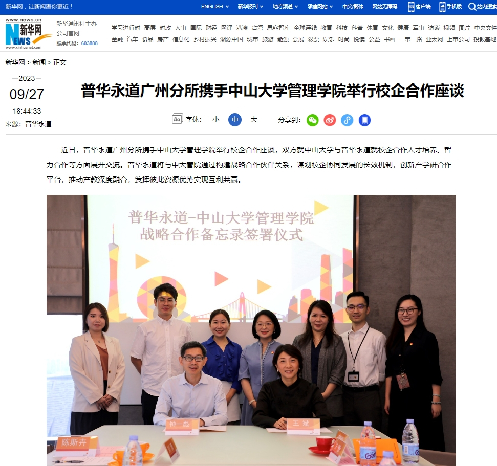 媒体聚焦丨新华网报道402永利集团官网与普华永道广州分所举行校企合作座谈