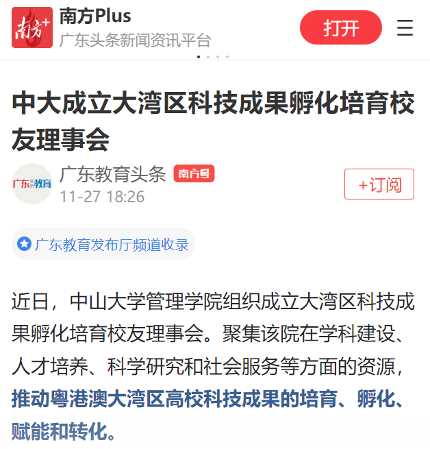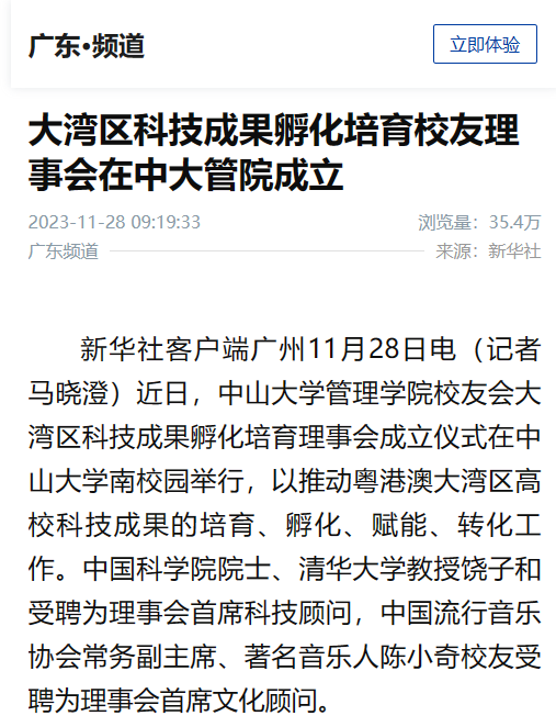 媒体聚焦丨新华社等媒体报道402永利集团官网成立大湾区科技成果孵化培育校友理事会