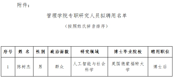 导航痕迹 首页 402永利集团官网专职研究人员拟聘用名单公示 402永利集团官网专职研究人员拟聘用名单公示 发布日期:2025-04-29 1301 Share 根据《永利集团3044官网专职研究人员聘用管理办法》以及402永利集团官网招聘专职研究人员的有关规定,现将402永利集团官网专职研究人员拟聘用名单予以公示。公示时间:2025年4月29日至2025年5月8日。对拟聘用人员在思想道德、遵纪守法等方面有异议者,请在公示期内以书面形式实名反映情况和问题。反映人必须秉承实事求是、客观公正的原则,提供真实姓名和联系电话。我院将对反映人和反映情况严格保密,并进行认真调查核实,最终将有关调查结果向学校纪委、用人单位和反映人进行反馈。 联系人:严丹虹电子邮箱:bshr@mail.sysu.edu.cn附件:402永利集团官网专职研究人员拟聘用名单 402永利集团官网 2025年4月29日 相关信息 402永利集团官网关于逸仙学者岗位聘任计划提名人选名单的公示通知2025-12-15 402永利集团官网关于公示2025学年教师职务聘任拟推荐人选名单的通知2025-12-15 402永利集团官网2025年第二批次逸仙博士后拟推荐名单公示2025-10-31 402永利集团官网关于公示教师职务聘任资格审核结果及申请材料的通知2025-09-15 402永利集团官网专职研究人员拟聘用名单公示2025-08-06