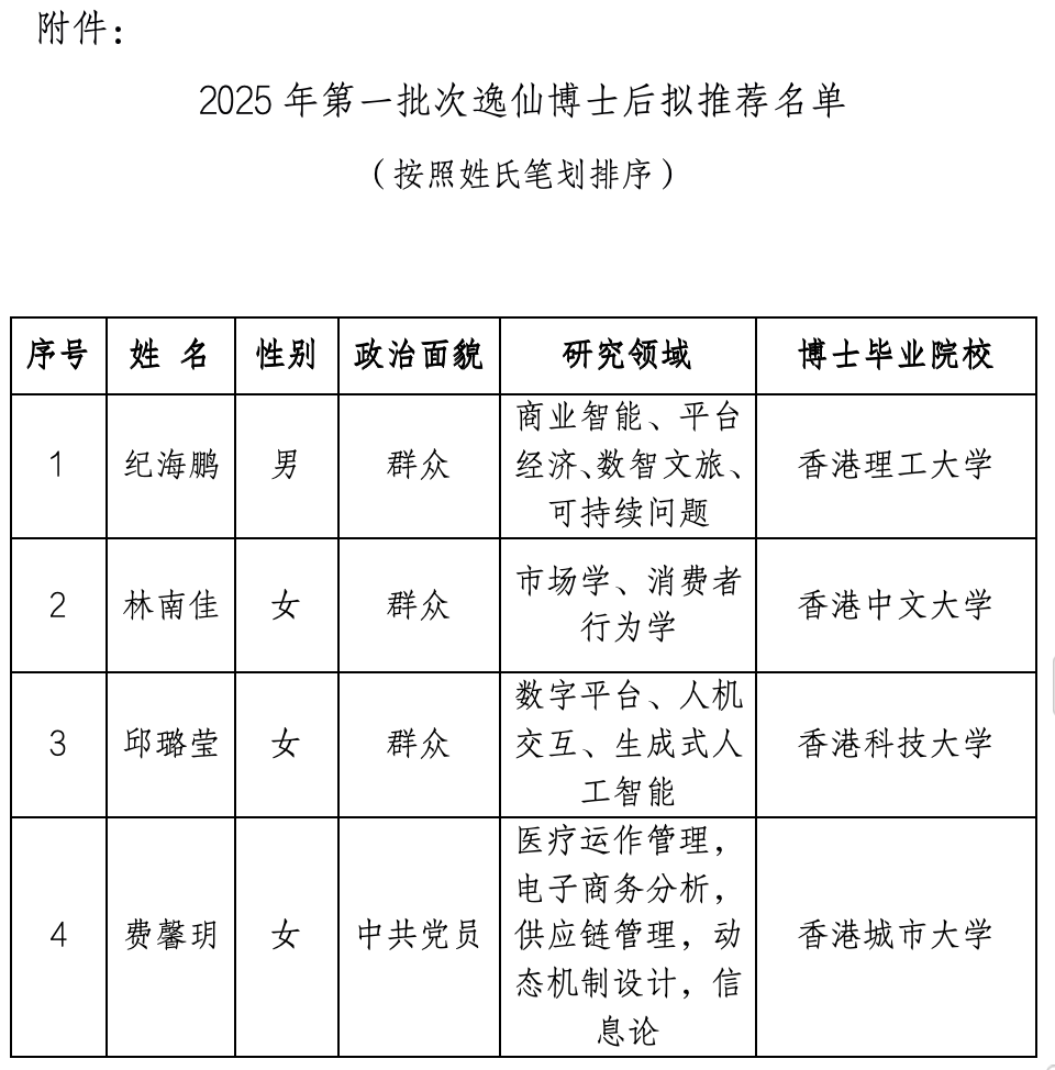 402永利集团官网2025年第一批次逸仙博士后拟推荐名单公示