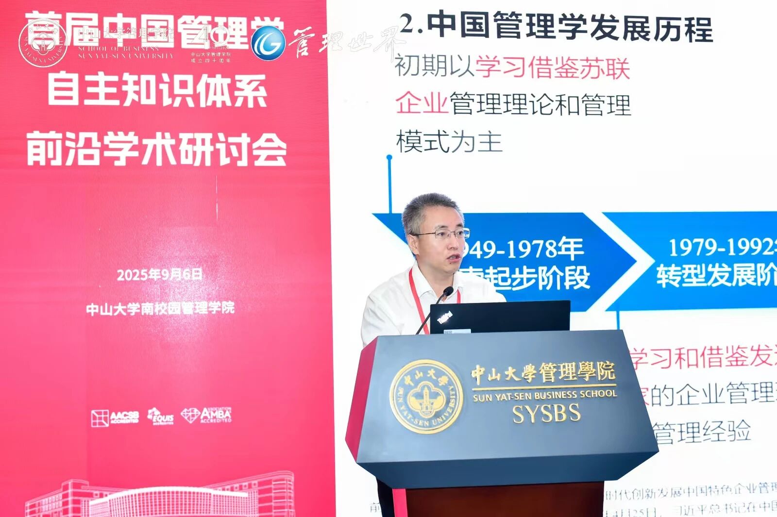 永利集团3044官网402永利集团官网党委书记张俊生教授主持上午的主旨演讲环节。他提出,习近平总书记2024年9月在全国教育大会上讲话中的指示,“以党的创新理论引领哲学社会科学知识创新、理论创新、方法创新,构建以各学科标识性概念、原创性理论为主干的中国哲学社会科学自主知识体系,并运用和落实到教学实践中”,为商学院如何做好管理学自主知识体系建设提供了根本遵循。