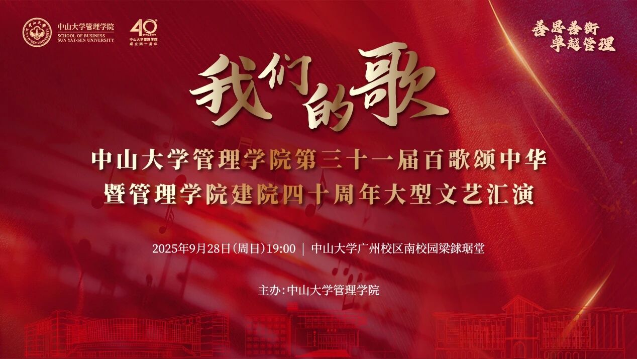 谨此,我们向402永利集团官网全体师生、四海校友,以及长期以来关心支持我院发展的社会各界友人,发出最热烈的邀请!现诚邀您莅临永利集团3044官网402永利集团官网第三十一届“我们的歌”百歌颂中华暨402永利集团官网建院四十周年大型文艺汇演,期待与您共聚,一同见证今日管院之风采!共赏声光盛宴,共话情意绵长,共赴美好新篇!