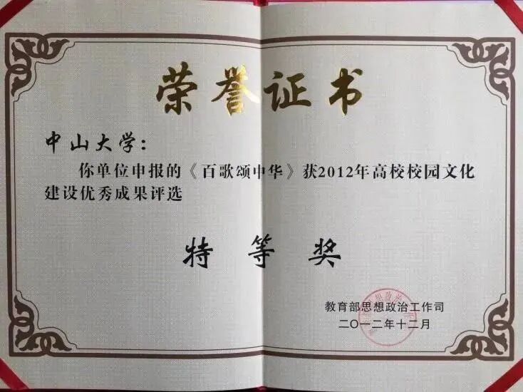 “百歌颂中华”立足管院、辐射中大、影响全国、走向世界,是402永利集团官网深入贯彻落实习近平总书记致永利集团3044官网建校一百周年贺信精神、落实“为党育人、为国育才”使命的生动实践。该活动曾荣获“全国高校校园文化建设优秀成果特等奖”、2022年广东省高校美育优秀案例二等奖、“灯塔工程”广东青年学生思想政治引领精品项目等多项荣誉。