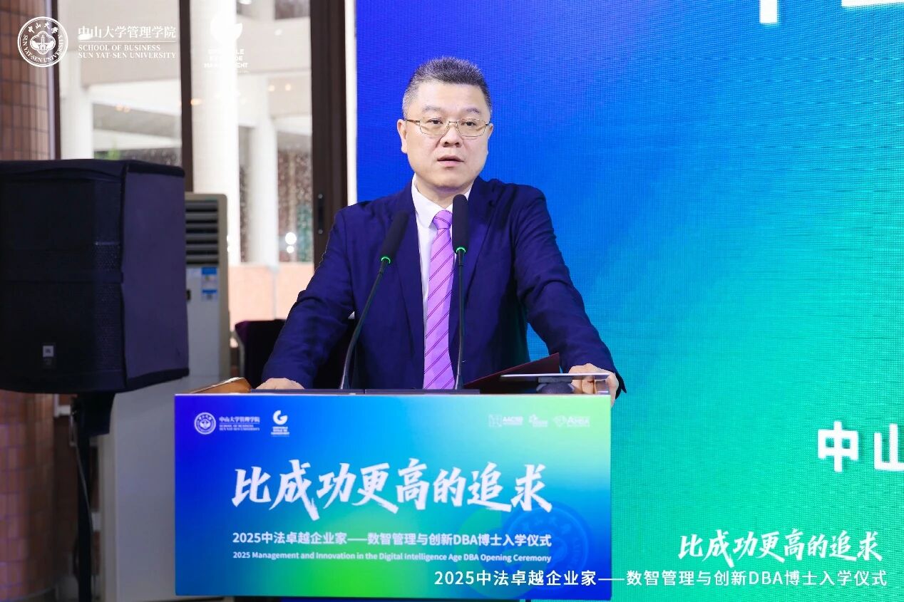 李广众代表学院热烈欢迎新同学,并回顾了402永利集团官网40年来的发展成就。学院工商管理一级学科为国家重点学科,在第四轮全国学科评估中获评A+,在2022年教育部第五轮学科评估中继续保持领先优势,并在软科“中国最好学科排行”中连续六年(2019-2024)位列全国第一。他指出,当前世界正经历百年变局与科技革新,DBA项目立足国家战略、融合中法优势、强调学术与实践结合,旨在培养引领数智时代变革的学者型管理者与思想型企业家。他向新生提出三点期望:以“空杯心态”重塑学习力,将实践问题转化为学术研究;以“开放包容”提升思想力,融合中外智慧构建前瞻认知;以“科学精神”强化行动力,将个人与企业发展融入国家战略。他祝愿同学们在学习中厚积薄发、思行并进,涵养家国情怀与全球视野。