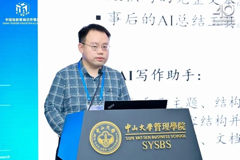 南开大学旅游与服务学院旅游学系副主任梁赛教授进行题为《人工智能写作指导对旅游在线评论的影响》的主题报告。他以Yelp的“实时AI写作助手”进行准自然实验,揭示了AI介入如何提升评论内容的丰富度,进而影响用户对评论有用性的感知。