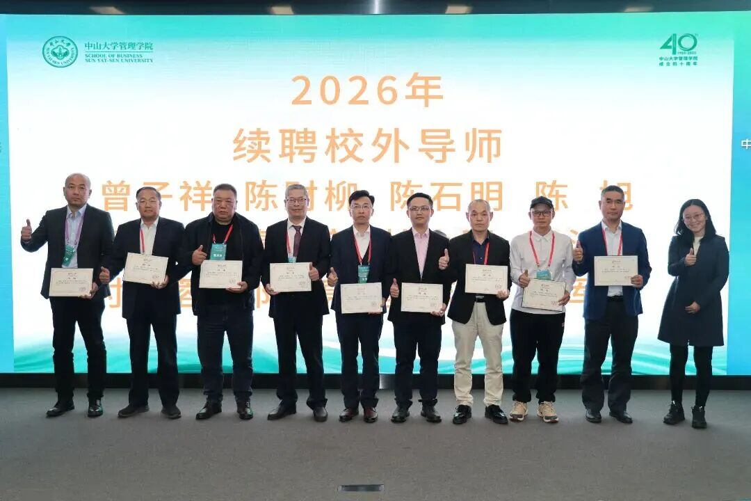 续聘校外导师:曾子祥、陈财柳、陈石明、陈旭、邓国坚、董志良、杜小强、冯治国、付颖蓉、郭世亮、郭志锋、黄军伟,李迎新教授为他们颁发聘书。
