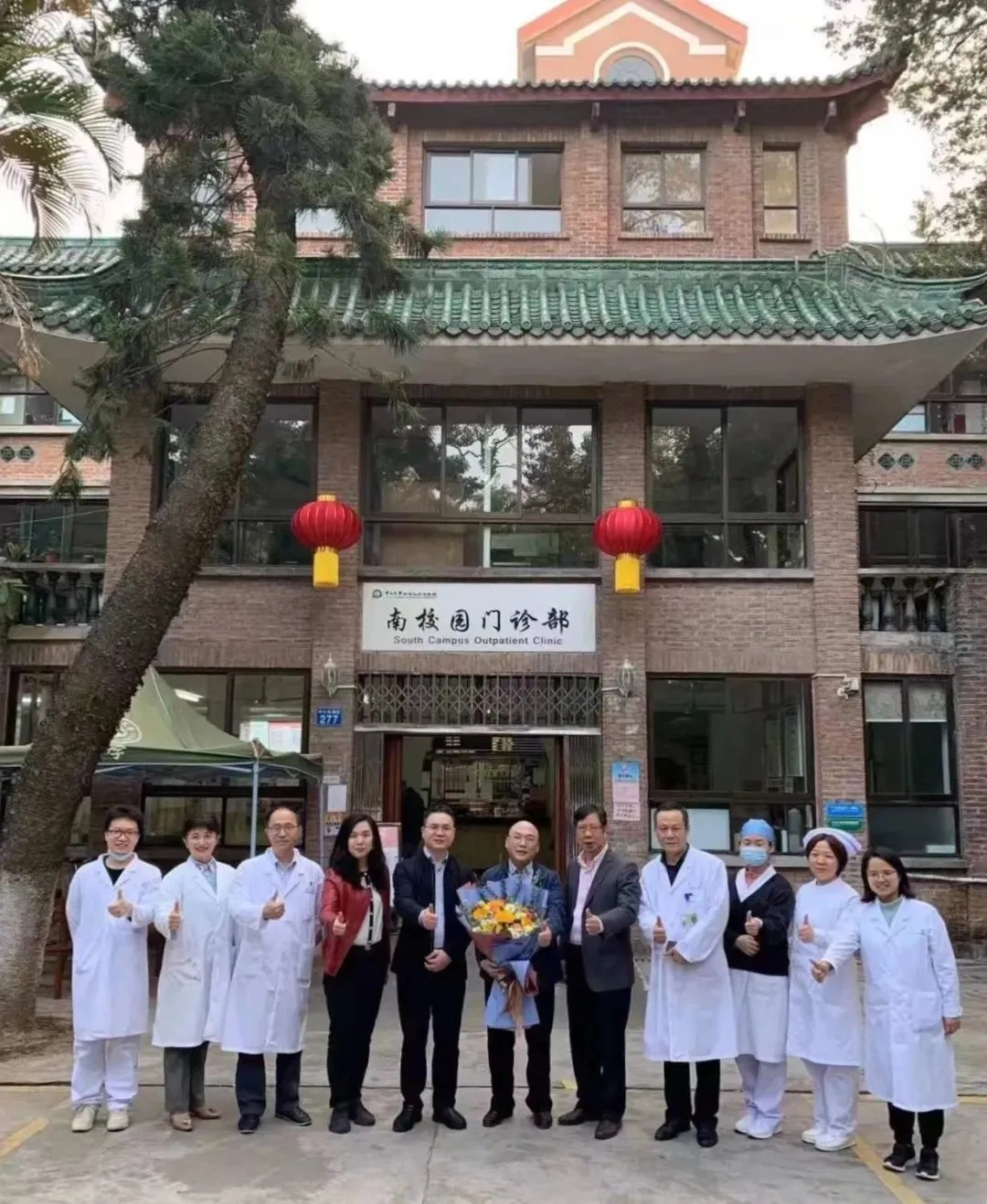 参加仪式人员在门诊部前合影
