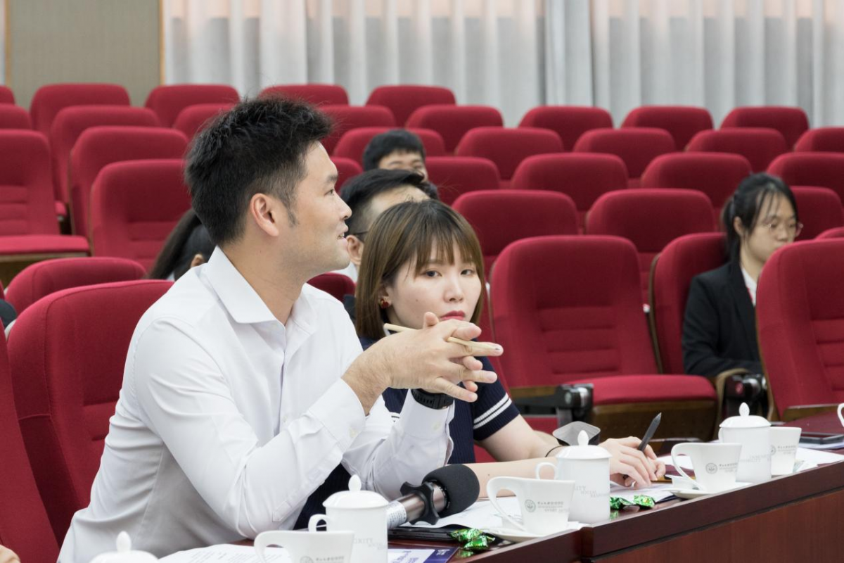 普华永道广州分所审计部合伙人杜维伟先生发言。他充分肯定了决赛队伍的表现,同时针对方案分析也提出了两点建议:一是要进一步提升评估方案的可行性,考虑推出产品的成本;二是要精准定位市场群体,预估整个项目的盈利能力。