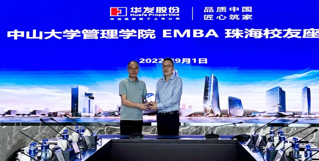 王帆院长向华发集团赠送EMBA校友理事会纪念杯