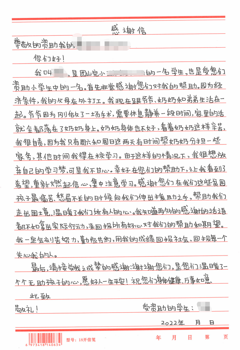 受助学生在信中介绍了自己的学习生活情况,分享梦想并表达感谢;文字质朴,饱含真情,触动人心。资助人们收到信件纷纷表示非常感动,帮助这些孩子们的成长是一件很有意义的事情,希望持续帮助他们。部分资助人表示,后续将挑选一些书籍,邮寄给受资助的孩子们。