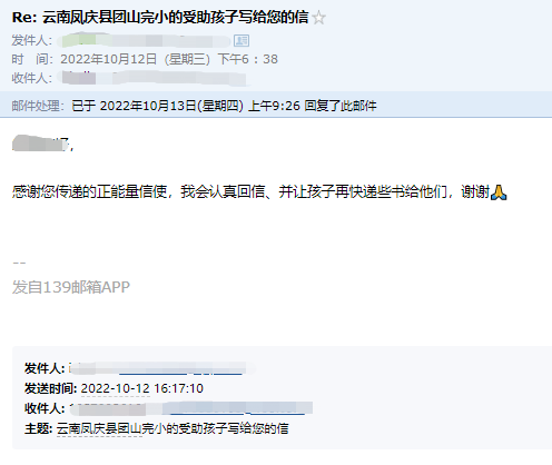 我院爱心资助人收到云南省凤庆县2022年受资助学生的感谢信