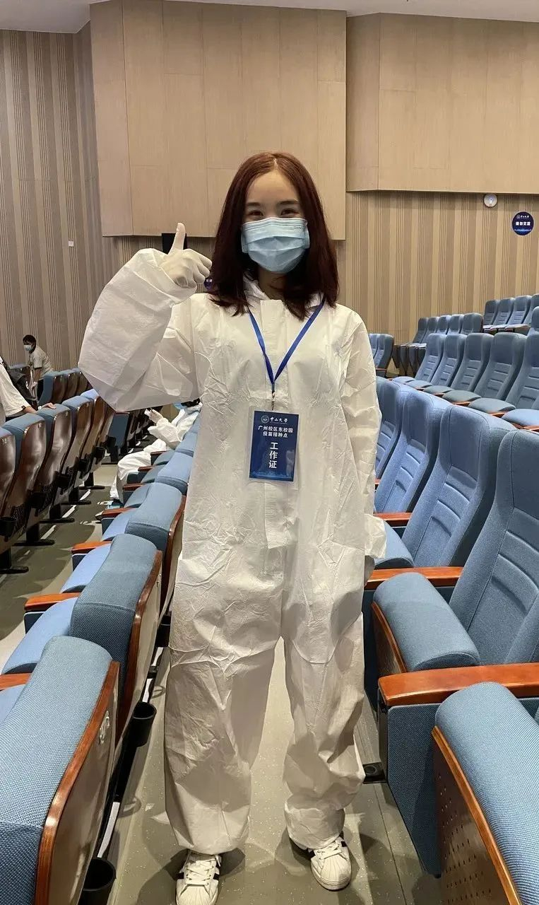 李嘉如同学担任广州校区南校园新体育馆周六固定线下负责人,主要负责组员的任务分配以及培训讲解、出入口的秩序维持、核酸检测扫码录入以及后勤补给工作。