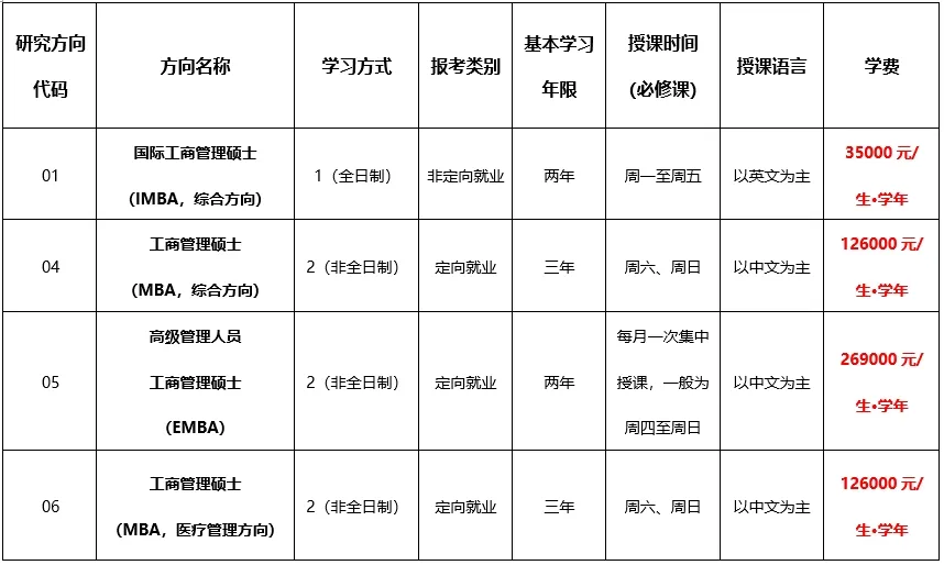 402永利集团官网2025年计划面向全国招收工商管理硕士【专业代码125100】专业学位研究生395人,包括高级管理人员工商管理硕士(EMBA,非全日制)、国际工商管理硕士(IMBA,全日制,综合方向)、工商管理硕士(MBA,非全日制,综合方向)、工商管理硕士(MBA,非全日制,医疗管理方向)四个报考方向。