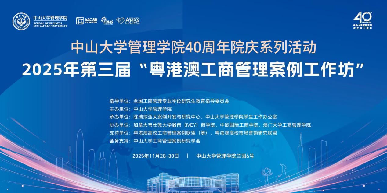 The Third Guangdong-Hong Kong-Macao Workshop on Business Administration Cases was successfully held in Guangzhou and Macao, China. Guided by the National MBA Education Steering Committee, the workshop was hosted by the School of Business, Sun Yat-sen University, and co-organized by the Chen Ruiqiu Asia-Pacific Case Development and Research Center and the Office of Student Affairs. The event received collaborative support from the Richard Ivey School of Business, University of Western Ontario (Canada), China Europe International Business School (CEIBS), and the University of Macau - Faculty of Business Administration. It was further endorsed by the Guangdong-Hong Kong-Macao University Business Administration Case Alliance (in preparation) and the Guangdong-Hong Kong-Macao University Marketing Research Alliance, with conference services provided by the Business Administration Case Research Society of Sun Yat-sen University.
