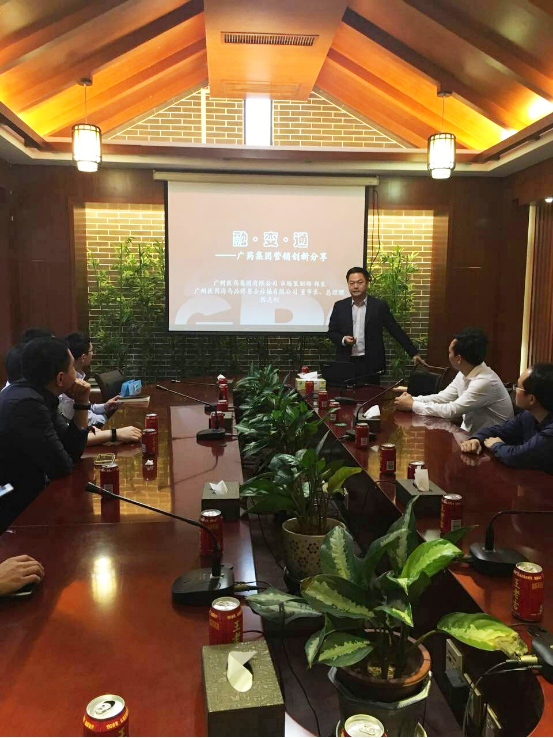 游完草堂之后,MBA理事长朱圣勇做开场致辞,感谢大家对于理事会活动的支持。随后,08春MBA陈志钊师兄向大家介绍了广药集团概况,分享广药营销传播及跨界案例。