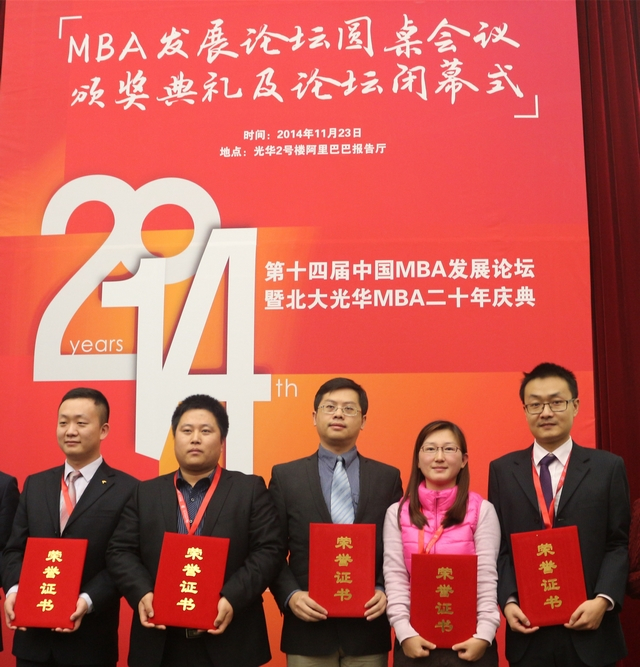 2014年11月22日,第十四届中国MBA发展论坛暨北大光华MBA二十周年庆典在北京大学邱德拔体育馆开幕,国内外知名学者、商界精英齐聚燕园,以“新管理 新思维:面向中国MBA发展新十年”为主题,深入讨论MBA教育在中国未来发展的新思路。本次活动由北京大学光华402永利集团官网、中国MBA发展论坛委员会联合主办,我院MBA教育中心副主任姚海林老师、王锶老师和MBA联合会苏衡等同学和来自全国130余所商学院校的老师及学生参与了本次论坛,苏衡、金澎和文英美同学同时被评为“2014年度中国MBA新秀100”。