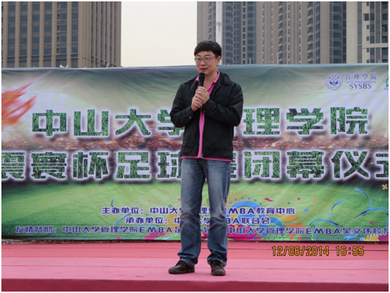 本届比赛获得了院领导及社会各界的广泛关注,出席嘉宾有:永利集团3044官网402永利集团官网党委书记谭劲松教授、MBA教育中心主任王远怀老师, EMBA足球俱乐部名誉主席曾毓昌校友,EMBA足球协会名誉会长翁原校友,南菱汽车董事长邓曦晖校友,蔡旭东校友,前国家足球队队员陈伯伦校友,广东广播电台著名足球评论员谢亮校友,EMBA足球协会副会长吴文伟校友、财务总监王仲校友、队长张继发校友,以及MBA联合会主席苏衡同学。
