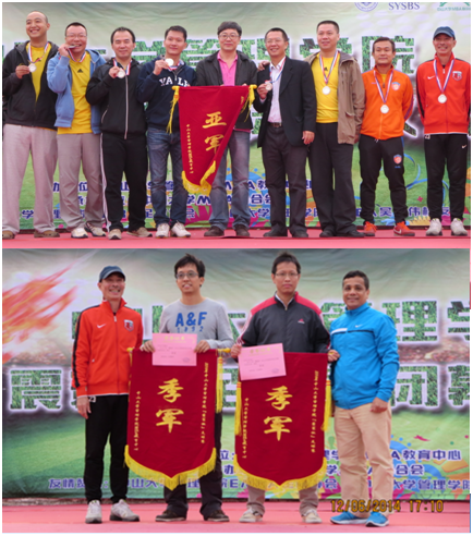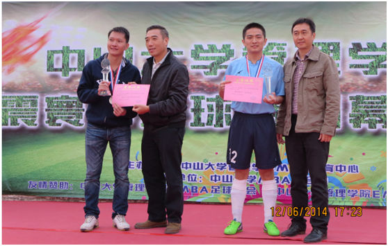 在获奖队员的热烈欢呼与庆祝合影中,2014年“震寰杯”中大管院足球赛圆满结束,明年精彩继续!