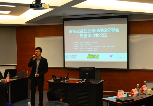 活动开场先由MBA联合会副主席蒲源与大家分享了MBA义工团的成立背景、回顾了今年以来,义工团开展的公益活动,特别介绍了创立善衡公益创业课程的初衷和愿景。