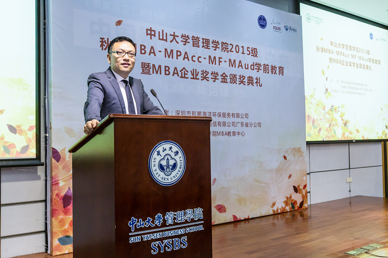 2015年8月22日,永利集团3044官网402永利集团官网又迎来了一批新面孔,他们朝气蓬勃、充满活力,他们带着满满的期待,迎接新的环境带来的一切。为了帮助新生们更好地了解融入永利集团3044官网402永利集团官网MBA,当天上午,永利集团3044官网402永利集团官网MBA教育中心特别为新生们举办了一开学的第一课——2015秋季MBA-MPAcc-MF-Maud学前教育暨MBA企业奖学金颁奖典礼。出席活动的领导和嘉宾有:永利集团3044官网402永利集团官网党委漆小萍书记、副院长王帆教授、深圳市航鹏海洋环保服务有限公司董事长助理林汉良先生、中国联合网络通信有限公司广东省分公司副总经理胡行正先生、中国联通广东分公司人力资源部总经理苏仁刚先生、深圳市航鹏海洋环保服务有限公司副总经理陈少娟女士,以及MBA教育中心老师等。本次典礼由永利集团3044官网402永利集团官网MBA教育中心主任王远怀老师与副主任姚海林老师共同主持。