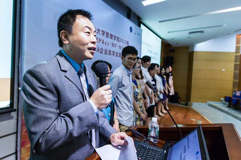 随后,深圳市航鹏海洋环保服务有限公司董事长助理林汉良先生以及中国联合网络通信有限公司广东省分公司副总经理胡行正先生分别上台致辞,他们表示将一如既往地大力支持中大管院MBA项目,希望学院能为社会各界持续输送高素质人才。致辞结束后,胡行正先生、林汉良先生以及永利集团3044官网402永利集团官网漆小萍书记分别为2015级“中国联通MBA新人奖”,“振芳MBA奖学金”以及MBA新生“英语优异奖”的获奖者颁发了荣誉证书。