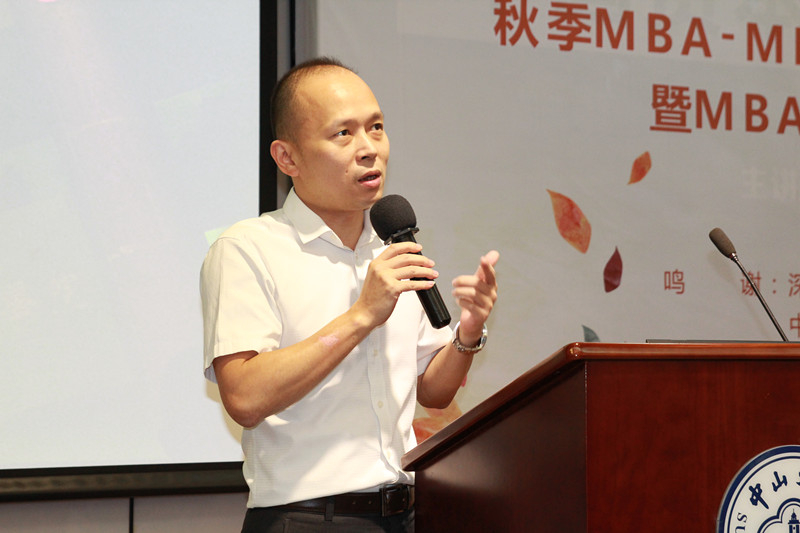 随后,第九届MBA联合会主席庄志坚同学以“魔幻般的魔法学院”为主题从魔法(知识)、敏捷、力量三方面,为新生们介绍了一个致力于搭建校内外交流、校友间联络与沟通的平台——MBA联合会。紧接着,李泽江校友为各位介绍了MBA微圈,分享自己扩展人脉资源的经验,希望同学们能在两年的学习生活中收获友谊、收获知识、收获成功。