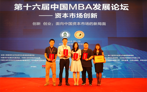 由中国社会科学院研究生院MBA教育中心主办的“第十六届中国MBA发展论坛暨资本市场创新——中国新三板创新层高峰论坛”于6月18-19日在北京举行。论坛以“资本市场创新”为主题,探讨未来MBA教育的创新发展模式的同时,探究资本市场如何成为经济发展的驱动力量。我院MBA教育中心行政主管黄妙玲老师和第九、第十届永利集团3044官网MBA联合会代表卢子亮、陈锦豪、郑燕群、梁嘉、李燕婷等同学,以及来自全国200余所院校的老师及学生参与了本次论坛。在本次论坛评选活动中,我院善衡公益创业课程之“广州义工联‘青苗计划’-- 永利集团3044官网MBA义工团“喜获“中国MBA十大校园经典活动奖”,由永利集团3044官网作为培养院校的广东大堰河企业管理有限公司荣获“中国MBA校友创业企业新星奖”,卢子亮、陈锦豪和廖立新等三位同学当选“2016年度中国MBA新秀100”。