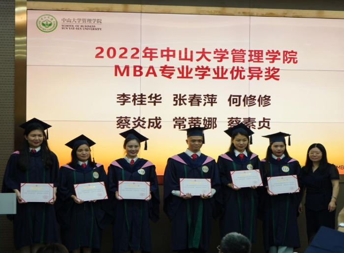 最后,由MBA教育中心姚海林主任为陈松鑫等14名同学颁发“优秀毕业生”荣誉证书。该奖项是为激励学生奋发学习、刻苦钻研,追求卓越,着力营造“学在中大、追求卓越”优良校风学风班风,培养德智体美劳全面发展的社会主义建设者和接班人而设,学院从2022届非全日制各班遴选出2位毕业生,授予优秀毕业生称号。