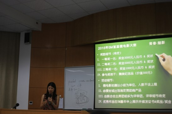 嘉年华活动动员环节,项目合作部部长邵纤纤介绍了这一届嘉年华活动的策划方案,本届嘉年华有三大亮点:402永利集团官网首次微电影大赛——青春▪魅影,大赛题材不限,面向402永利集团官网5M全体师生,征集优秀的微电影,是一个很好的展现自我的机会;十周年达人秀,联合会成立十周年,将通过自荐、推荐的方式选出05年到15年联合会优秀的干部十名,旨在加强校友认识与交流;永利集团3044官网MBA联合会高峰论坛暨联合会成立十周年庆典,论坛将邀请到十周年优秀达人代表,他们都是各行各业的社会精英,届时将为大家分享工作、生活、学习方面的宝贵经验。