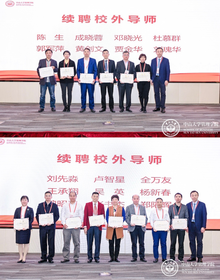 接着,大会进行了隆重的优秀导师、校友颁奖典礼与校外导师聘任仪式,顾乃康教授等优秀教师荣获“教学优秀奖”“论文优秀贡献奖”,邓晓光等优秀校外导师荣获“精诚伙伴奖”“卓越贡献奖”,姚麟等优秀MBA校友荣获“防疫抗疫突出贡献奖“,同时领导嘉宾们也为陈锡灿等新聘校外导师、陈生等续聘校外导师颁发了聘任书。