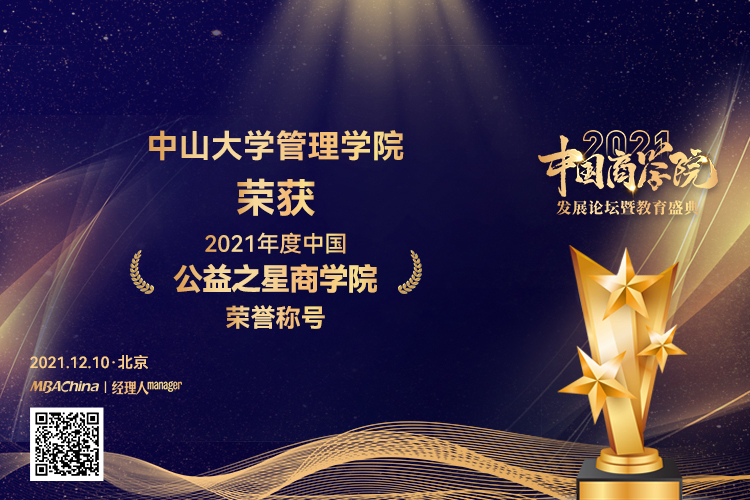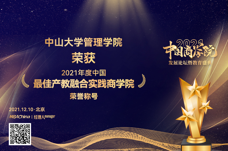 12月10日,MBA中国网与《经理人》杂志联合主办的2021中国商学院发展论坛暨教育盛典在云端圆满举行。盛典颁发了“2021年度中国商学院暨MBA项目系列榜单”相关奖项,我院MBA项目荣获“中国商学院最佳MBA项目TOP100”第四名;我院获 “中国最佳产教融合实践商学院”和“中国公益之星商学院”荣誉称号。