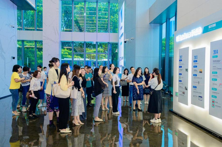 在企业发展历程和产品矩阵展示环节,参访团队从产品与项目视角深刻了解到字节跳动在人工智能、信息科技应用上的高速迭代以及其在前沿数字化技术落地应用的实践。在字节跳动的功能公共区域,参访团队沿着场景化职能服务窗口、健身娱乐室、员工文化产品演示厅等区域一路参观,近距离观摩企业在员工关怀上的创新举措和字节范企业文化的精心打造。