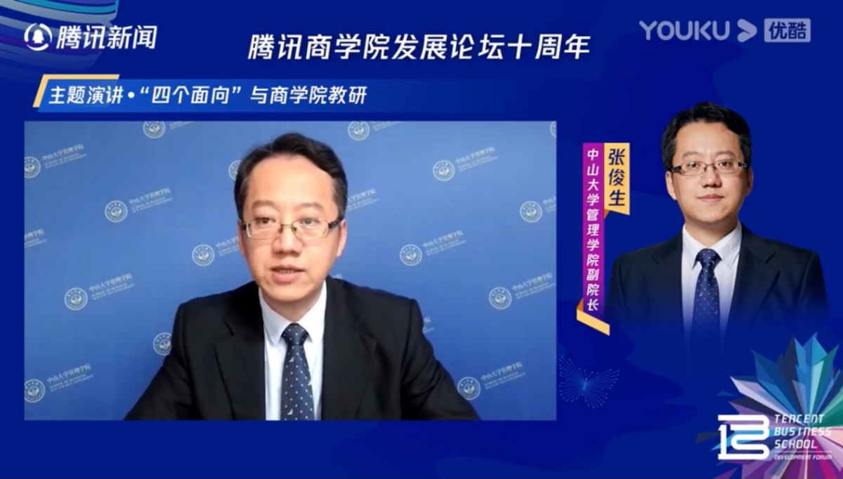 我院张俊生副院长受邀在本次商学院发展论坛上做了主题演讲。张俊生副院长以《“四个面向”与商学院教研》为题,首先向与会嘉宾们介绍了我院在“十三五”时期取得的成绩,随后阐述了我院在“十四五”时期如何响应党和国家的号召,基于“四个面向”进行有组织的科研、有组织的教学以及组织架构优化。