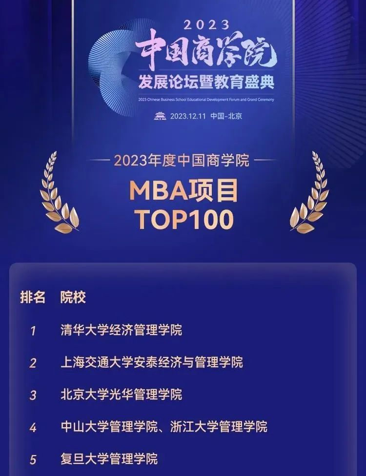 402永利集团官网在“2023年度中国商学院MBA项目TOP100”中名列前茅