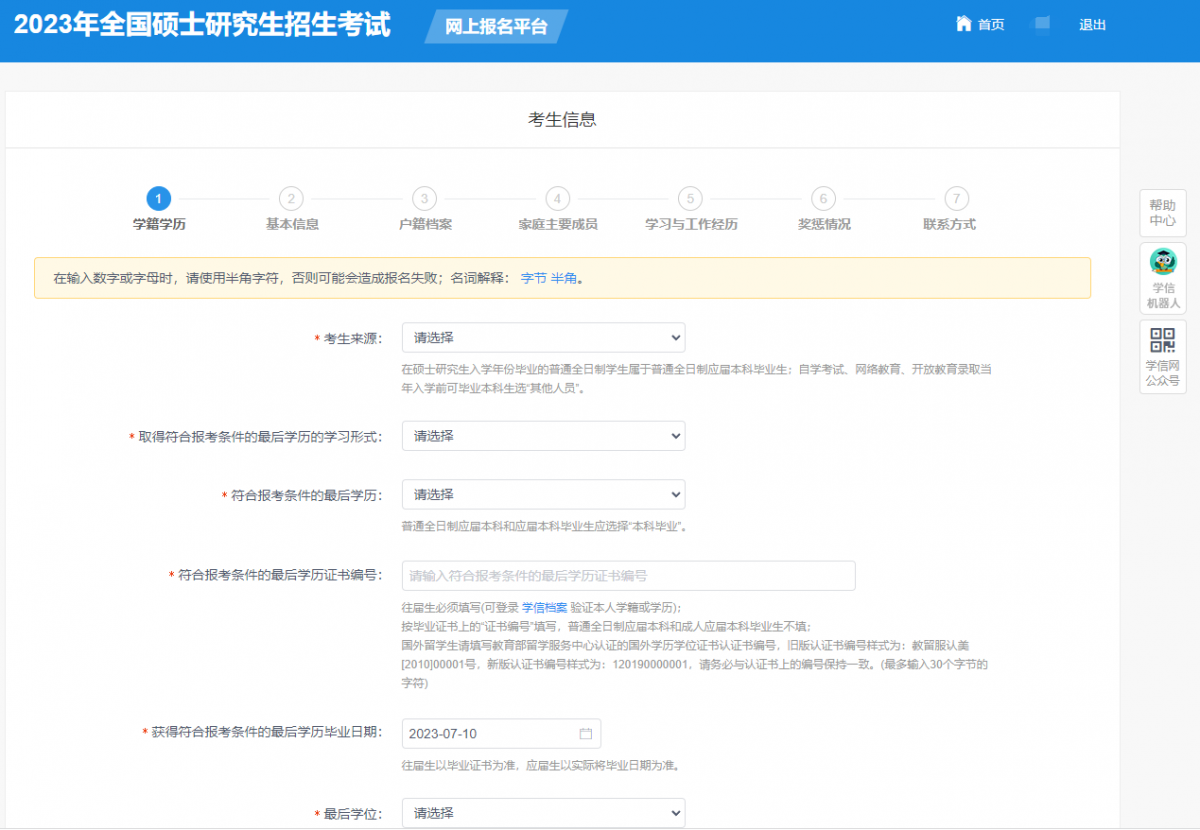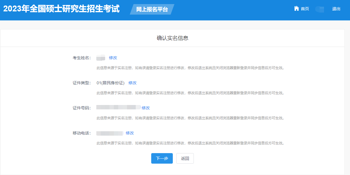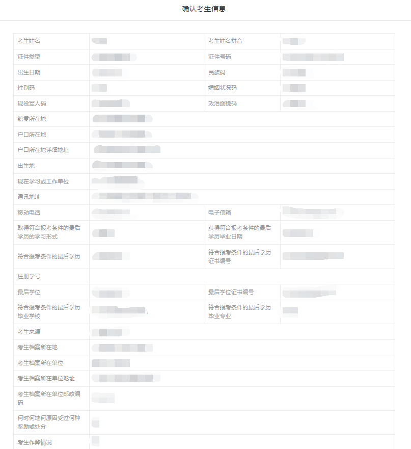 1) 请考生自行检查填写信息,确保填写的信息与实际证件完全一致;