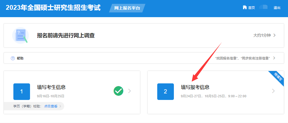 15、至此,“个人信息”部分已填写完毕,可进入“报考信息”填写阶段。