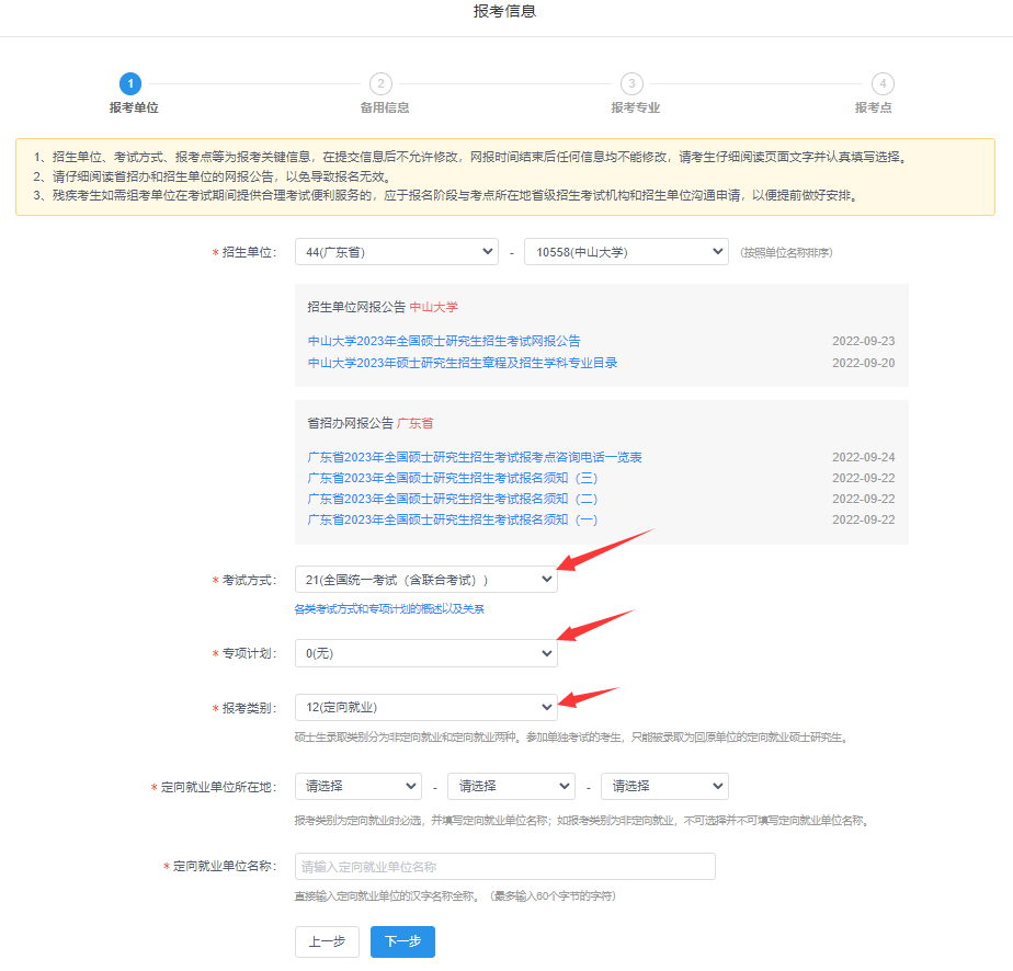4) 定向就业单位信息按当前实际工作单位填写即可,如下示例: