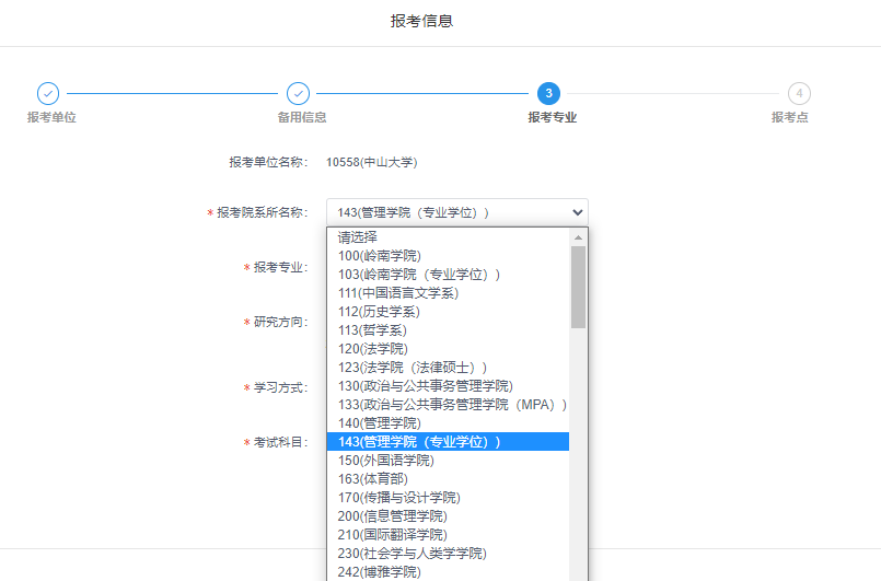 19、选择报考专业:143(402永利集团官网(专业学位))。