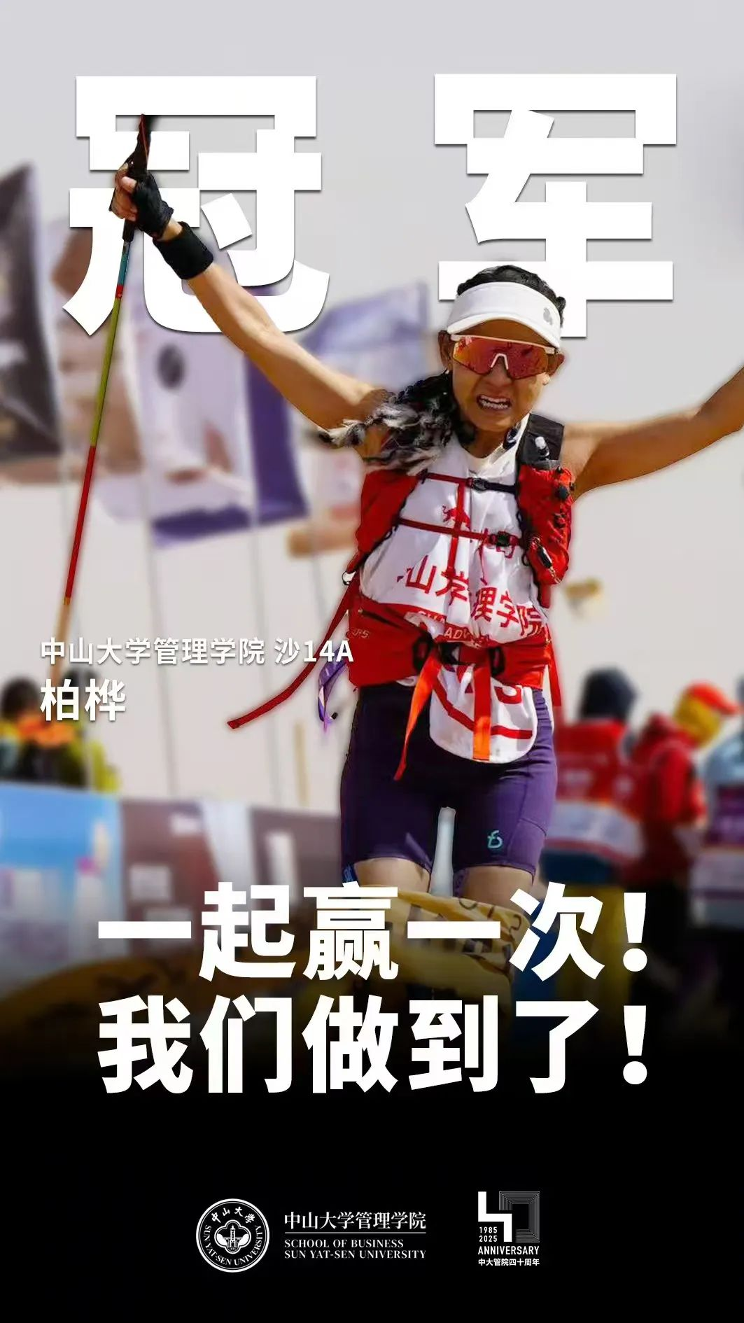 永利集团3044官网402永利集团官网2024级MBA柏桦以7小时46分02秒的优异成绩,勇夺女子A组个人冠军,刷新学院参赛以来的历史最佳战绩,以一场逆境突围的“青春之战”,为五四精神写下新生代奋勇拼搏的生动注脚。同时,“沙14”中大飞龙易方达∙华鹤战队以8小时38分28秒的成绩获得MBA组别第8名,跻身赛事十强。2022级MPAcc吴鑫斩获男子B组个人第9名、2023级MBA成嘉怡荣获女子C组个人第10名。