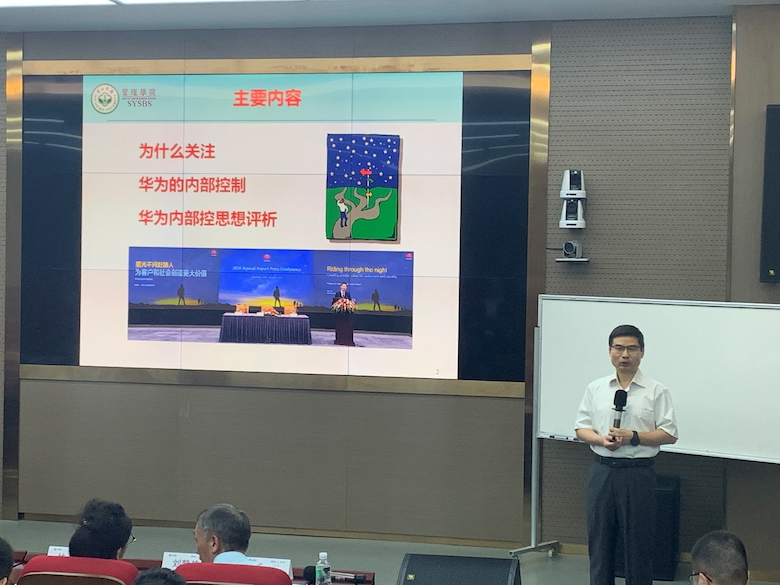 在本次讲座中,林斌教授就“华为内部控制思想评析”主题进行了精彩分享,他通过介绍国内标杆企业华为的“一点两面三三制”内部控制实践,总结其内部控制管理思想,为我国企业如何建立健全和有效实施内部控制制度提供借鉴。通过立足中国情境和内部控制理论分析和评价华为的内部控制,尝试提出具有学理性的内部控制政策建议,以服务我国的内部控制实践。