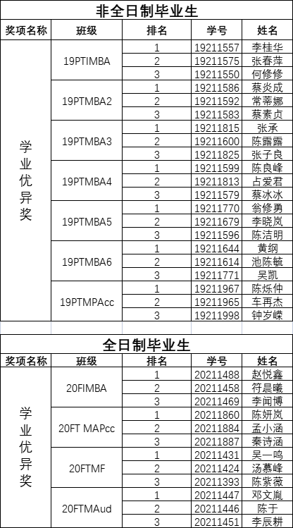2022届永利集团3044官网402永利集团官网MBA-MPAcc -MF-MAud学业优异奖拟获奖名单公示
