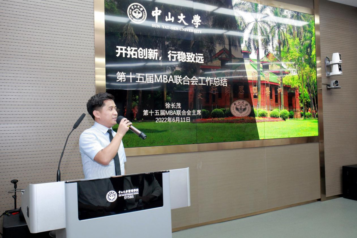 在换届仪式前,第十五届MBA联合会徐长茂主席代表第十五届MBA 联合会做总结汇报,并对优秀干部进行了表彰。