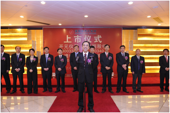 然而好事多磨,2012年7月26日,历经六年的准备与努力,科恒股份终于在深交所创业板正式挂牌上市,科恒董事长万国江、江门市副市长易中强与众多嘉宾共同敲响了开市的钟声。至此,科恒成为国内首家,也是唯一一家以稀土发光材料为主业的上市企业。