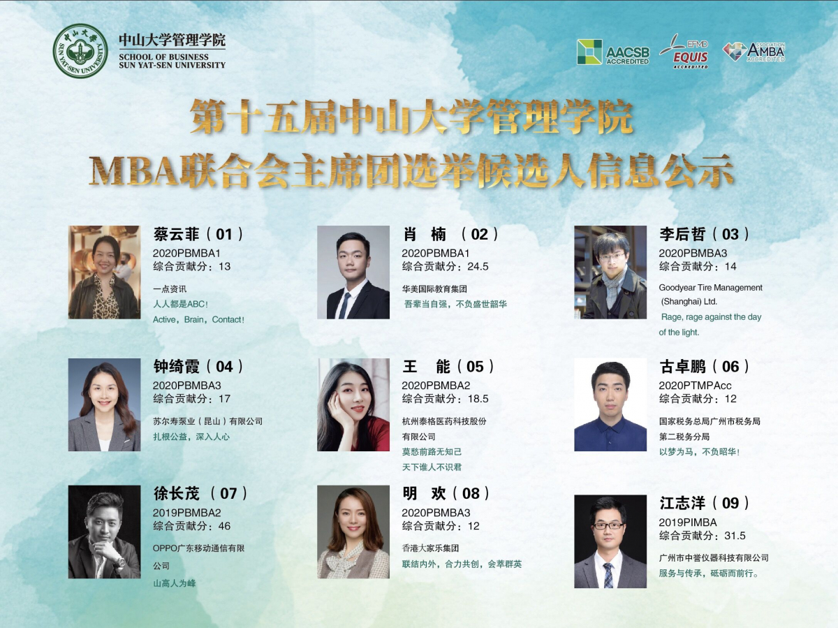 第十五届MBA联合会选举大会候选人信息公示