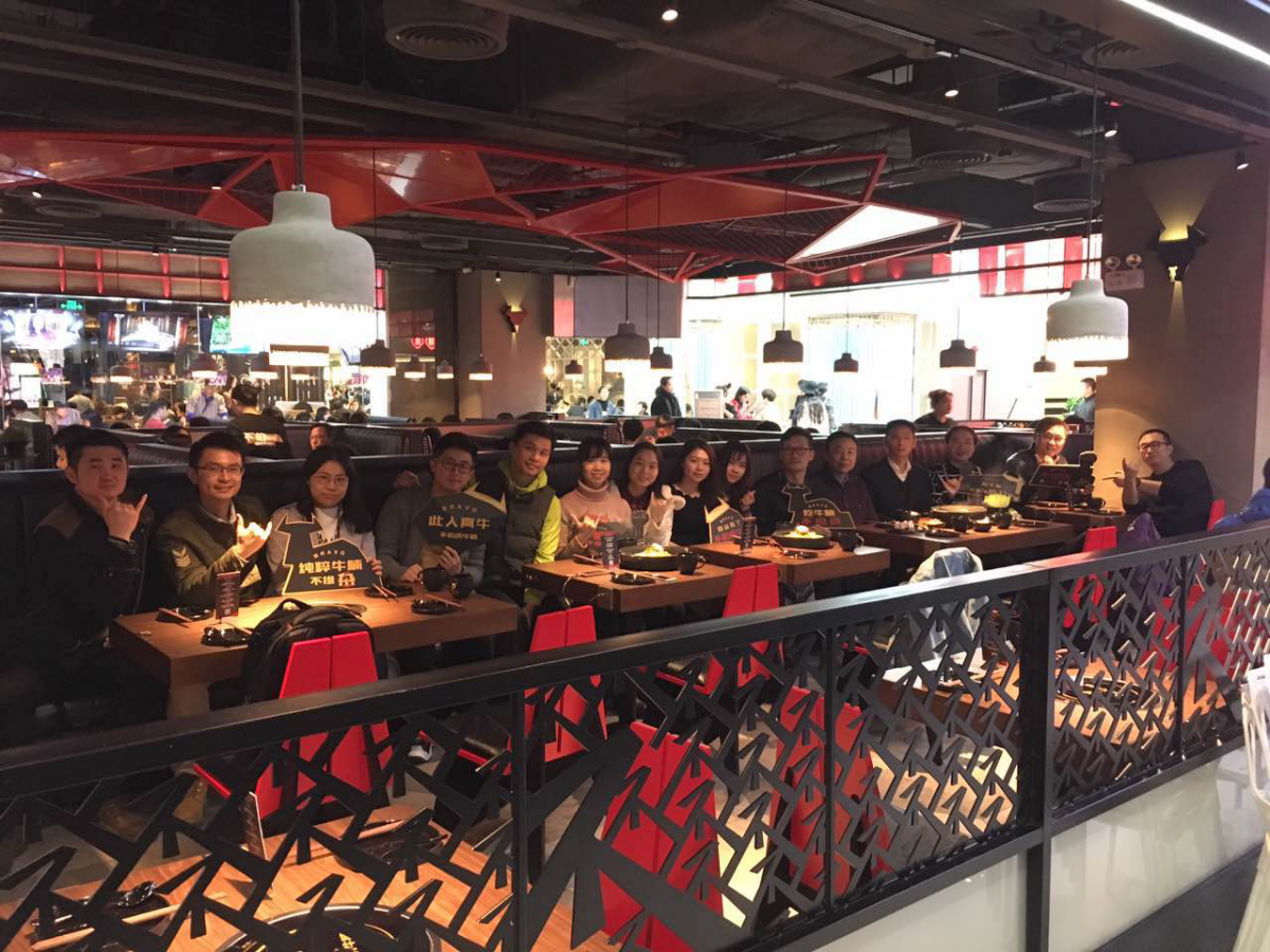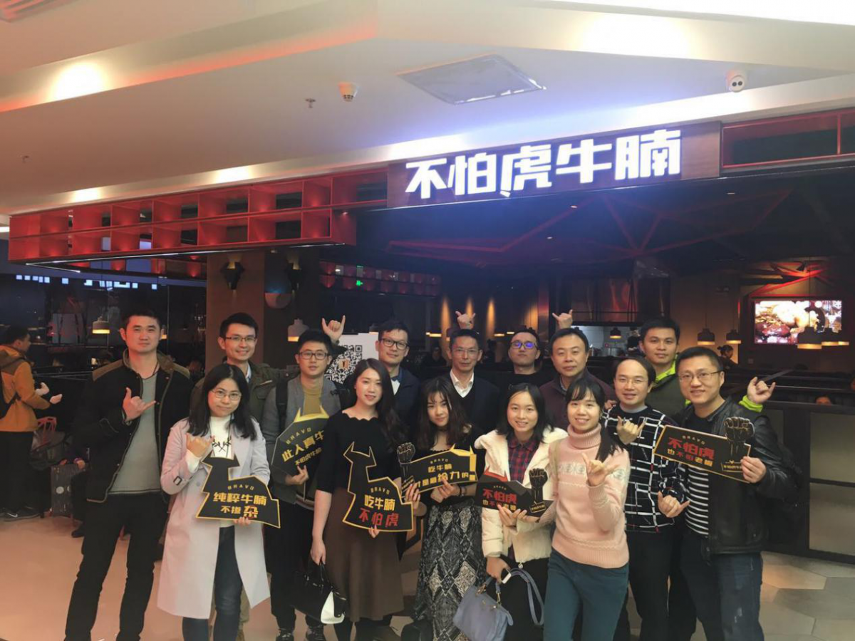 采访最后,项师兄带领我们参观了门店、后厨、供应中心等场所的设计布局,并一边试吃了店里各种口味的主打产品,一边听项师兄聊关于“不怕虎牛腩”创业路途中发生的各种有趣的小故事。澳大利亚昆士兰及阿根廷潘帕斯牛腩煲的浓浓香味,伴着各式各样配菜及小食的清爽,让人总有点意犹未尽的感觉,采访组的小伙伴们都乐在其中并获益良多。最后,我们和师兄合影留念,结束了本次愉快的采访之旅。大家都希望下次能再有机会与项师兄共聚闲聊,听“不怕虎牛腩”未完待续的创业故事。同时,也诚祝项师兄的“不怕虎牛腩”——代表着新兴牛腩品类餐饮品牌业态的创业项目越做越大,越走越远!