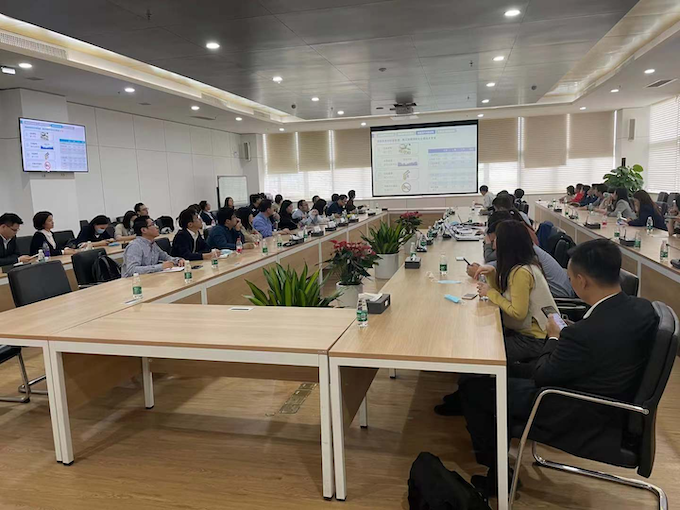 随后,我院师生和广汽埃安的销售、研发领域专家进行了座谈,就商业模式、品牌运营、工业智造等话题进行深入交流。